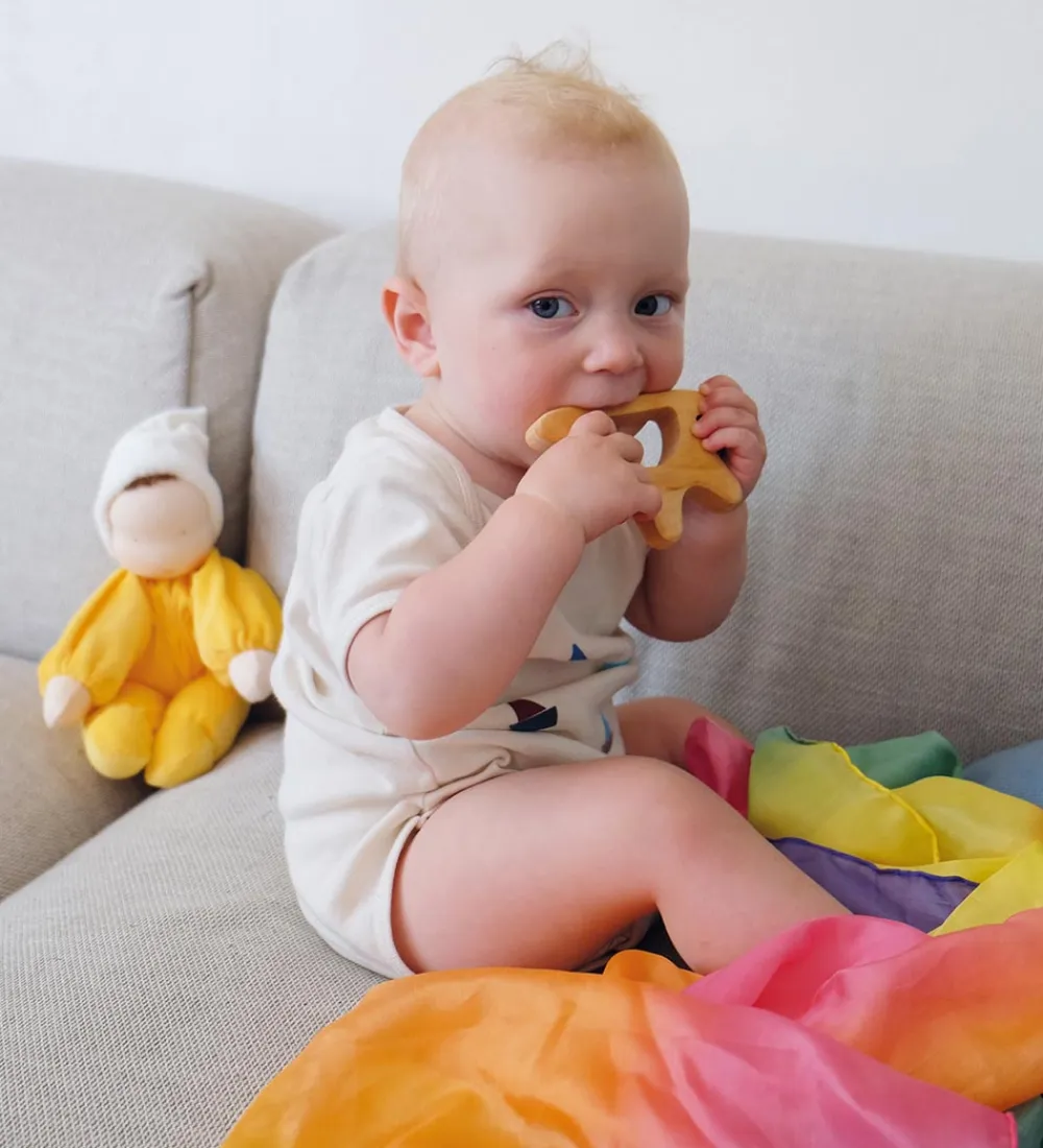 Grimms ranglen er lavet i træ og er perfekt til de små, som stadig er ved at øve motorikken og sanserne. Ranglen har en god form med et hul i midten, så den er let for selv de små at holde fast i. Når ranglen ikke bliver leget med, er det oveni en smart dekoration på børneværelset.