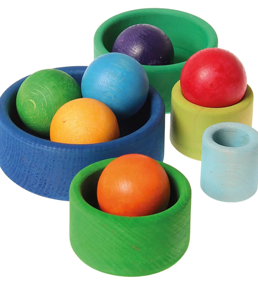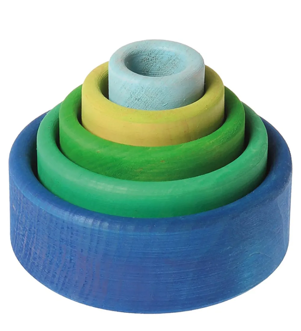Grimms stableskålene er lavet i træ og er perfekt til de små, som stadig er ved at øve motorikken og den logiske sans. Lagene passer alle sammen, så de små skal finde den rigtige rækkefølge, ligesom et stabletårn. Når stableskålene ikke bliver leget med, er det oveni en smart dekoration på børneværelset.