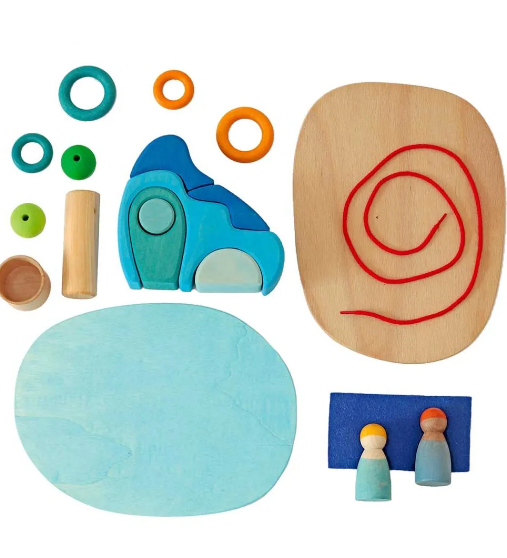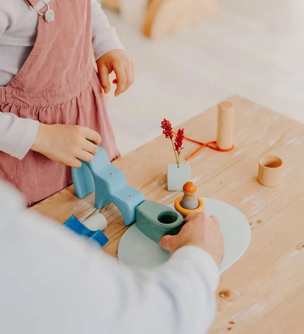 Grimms trælegetøjet kommer i adskillige forskellige former, og derfor er det kun fantasien, som sætter grænser for, hvad man kan bygge. Med de mange muligheder er der lagt op til mange timer med kreativt leg.