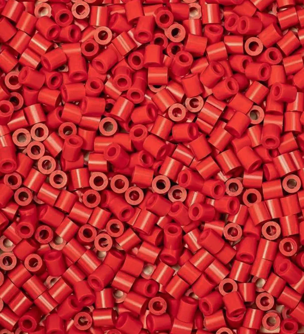 Sjove Hama perler i ensfarvet kirsebærrød.