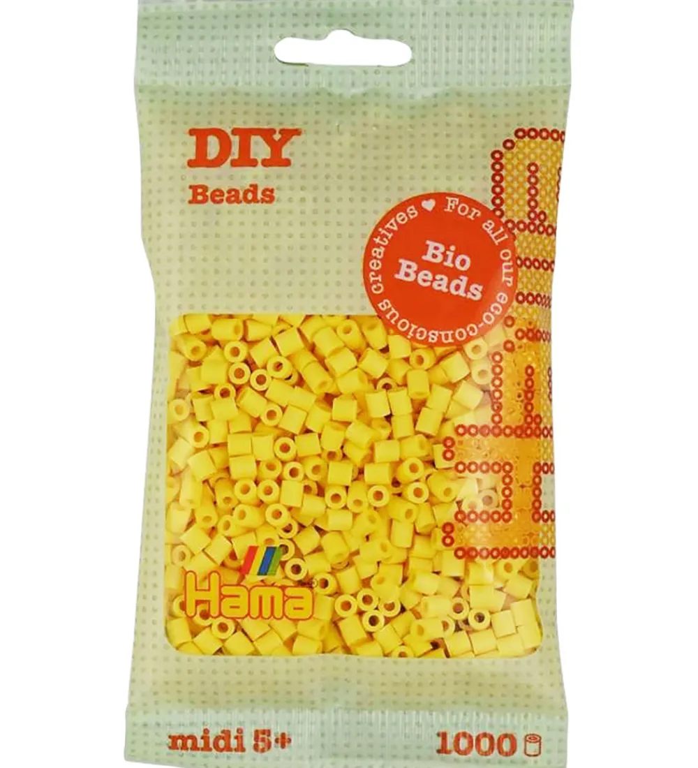 Flotte Hama perler i ensfarvet lysegul.