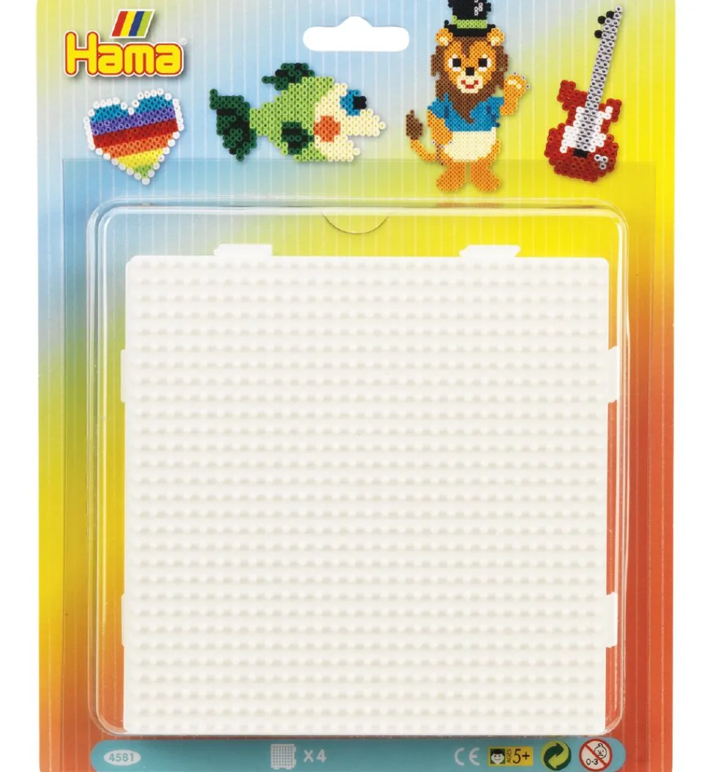 Hama perleplade-pakken indeholder 4 firkantede perleplader til Hama Midi perlerne. Perleplader kan sættes sammen, via et praktisk klik-system, så barnet har en større perleplade at udfolde sig på.