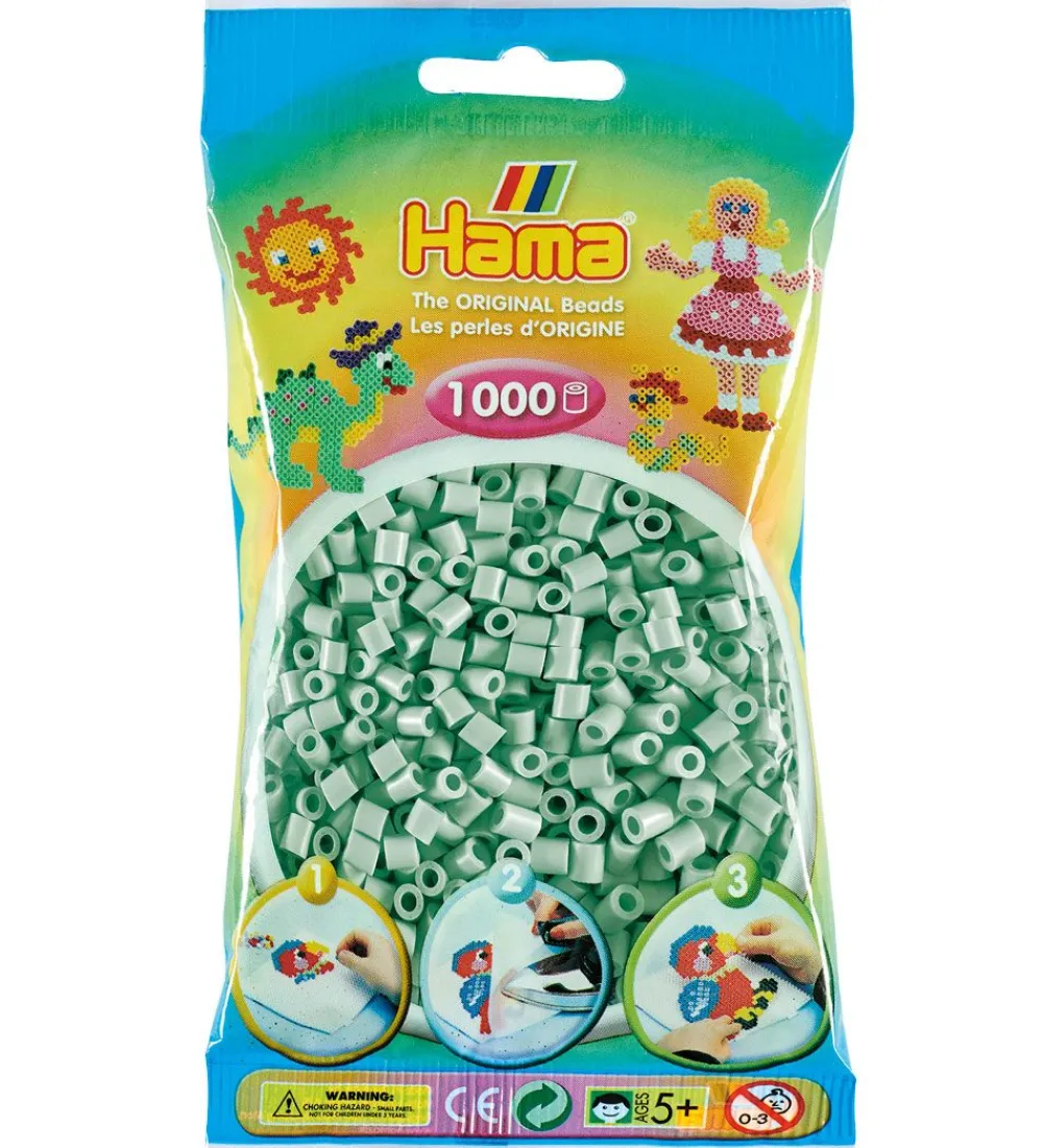 Sjove Hama perler i ensfarvet eukalyptus-grøn.