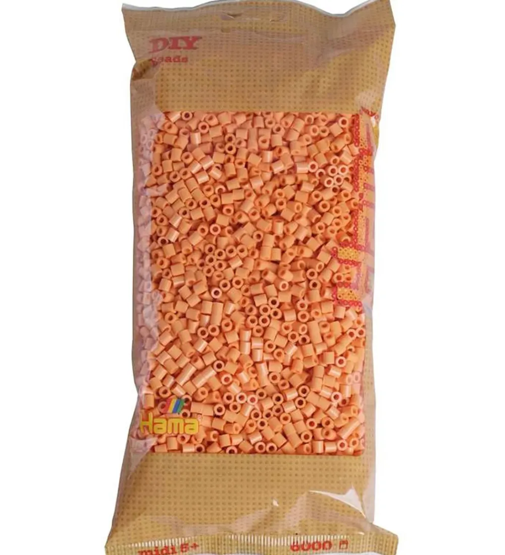 Sjove Hama perler i ensfarvet lys abrikos farvet.