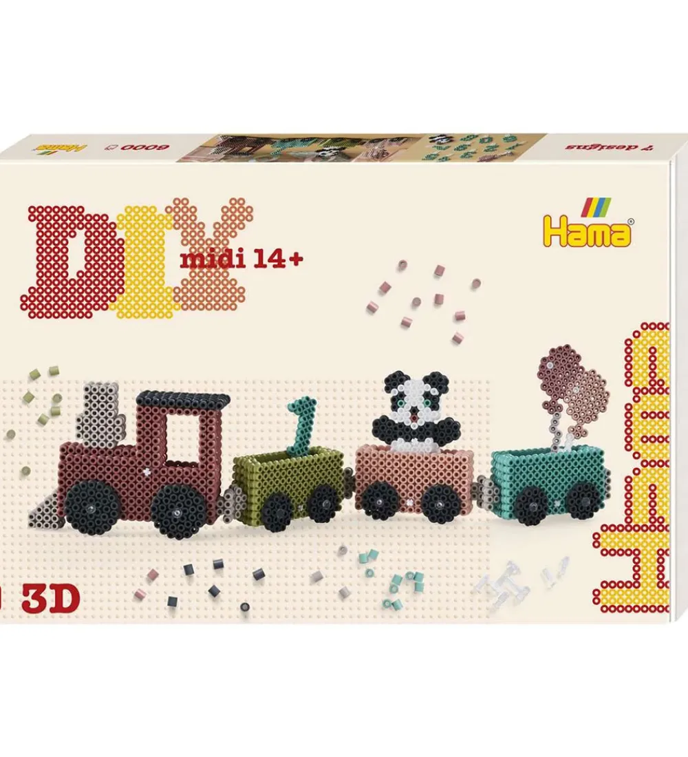 Fin Hama perlesæt, hvor det er muligt at lave et 3D-fødselsdagstog med en panda.