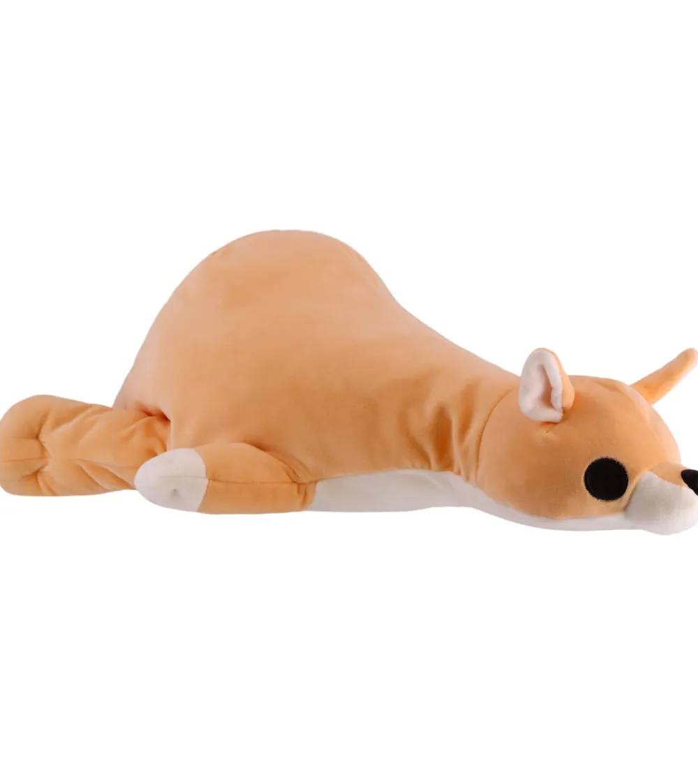Sød Hug A Lumps bamse formet som en kænguru i en lys orange med hvide detaljer.