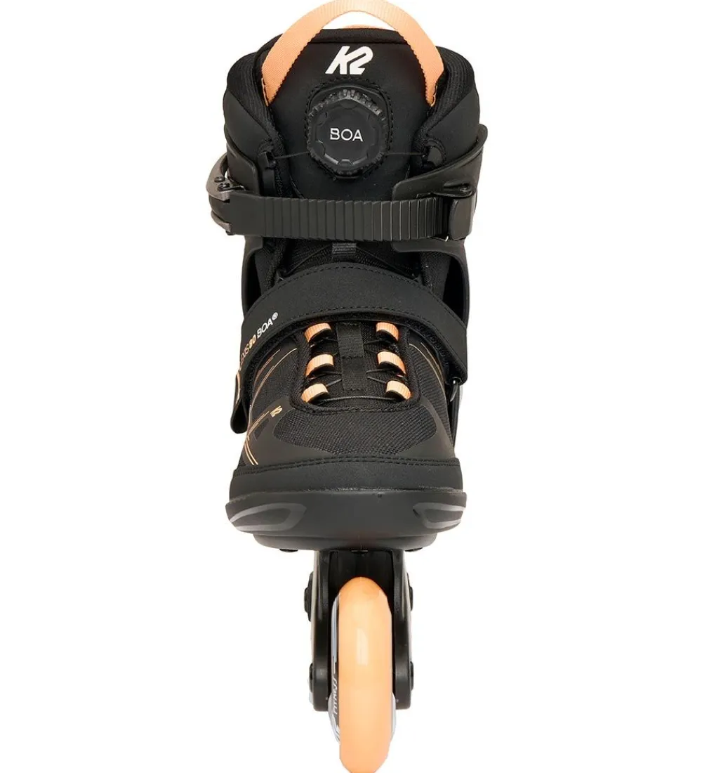 Flotte K2 rulleskøjter i sort med orange detaljer.