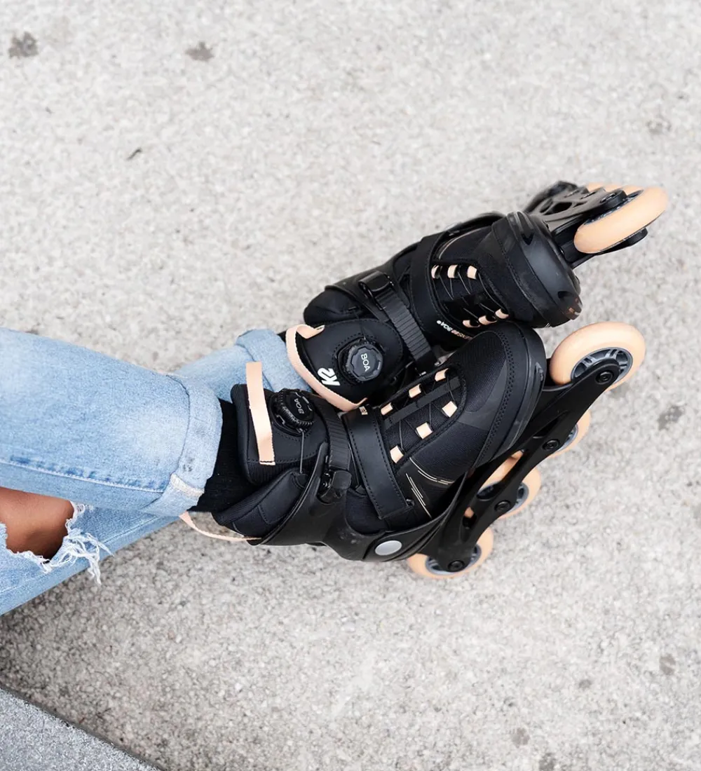 Rulleskøjterne lukkes med både et smart BOA-drejespænde, der med et enkelt klik kan drejes for at stramme eller løsne skoenes snører, en velcrorem og en plastrem, så inlinerne er lette at få af og på. Bagpå er der en stor bremseklods på den højre rulleskøjte, så rulleskøjterne er lette at styre.