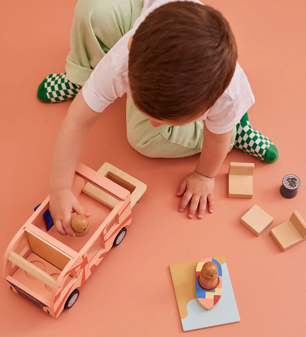 Sjovt Kids Concept trælegetøj i form af en camper. Sættet består af: