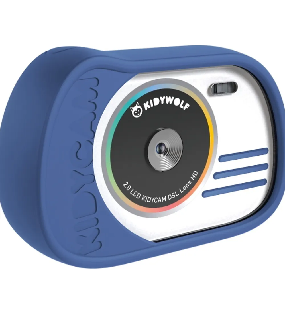 Kidywolf kameraet er forstærket med silikone, som sikrer at man har et godt greb og at det er vandtæt ned til en meter. Kameraet har en god skærm på den ene side og har også blitz. Kameraet er ideelt at have med på turen til f.eks. skoven, stranden eller lignende. Kameraet kan både tage billeder og video.