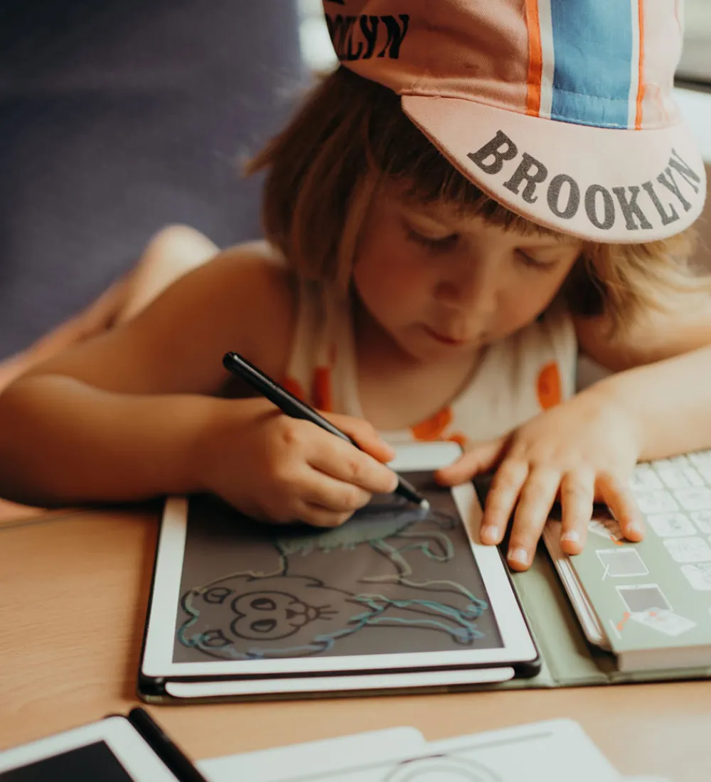 LCD-tegnetavlen er let og bærbar, så den er nem at have med på farten. Tegningerne kan slettes med et tryk på en knap, og når tegnetavlen låses, bliver det tegnede gemt.