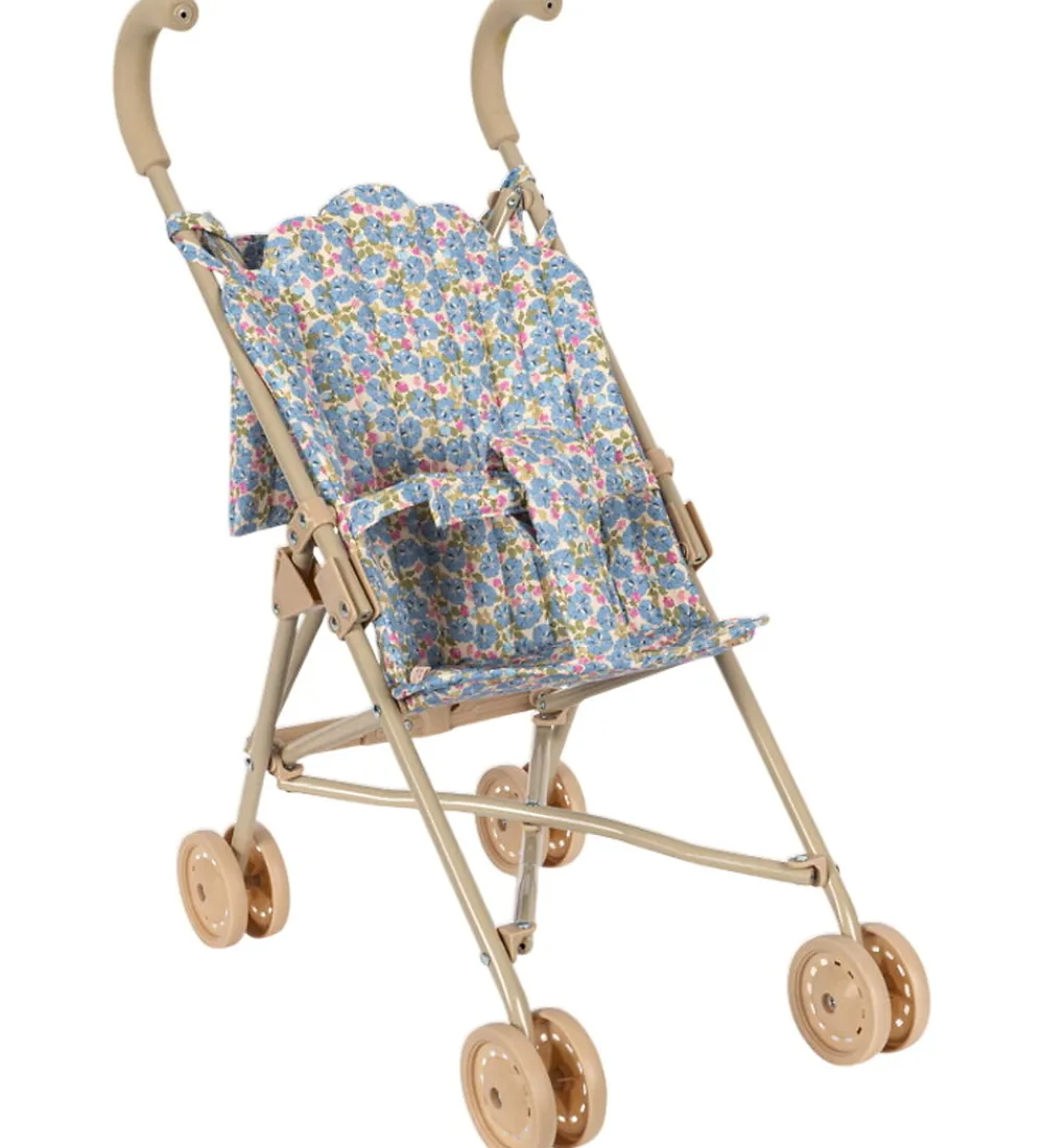 Skøn Konges Sløjd dukkeklapvogn med et flot, multifarvet blomsterprint.