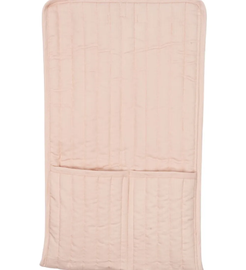 Elegant dukketilbehør fra Konges Sløjd der består af et plejesæt i en blid rosa med pink blomster. Plejesættet inkluderer en smart savlesmæk, en sød ble med smukke blomsterbroderier, og en blød bomuldsklud med mulighed for opbeavaring.