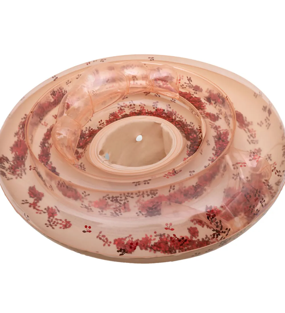 Lækker Konges Sløjd badering i en smuk lys rosa nuance med et fint blomstermotiv i røde nuancer, der pynter på fronten. Indeni er der glimmerkonfetti. Baderingen tilbyder en elegant tilføjelse til vandleg.