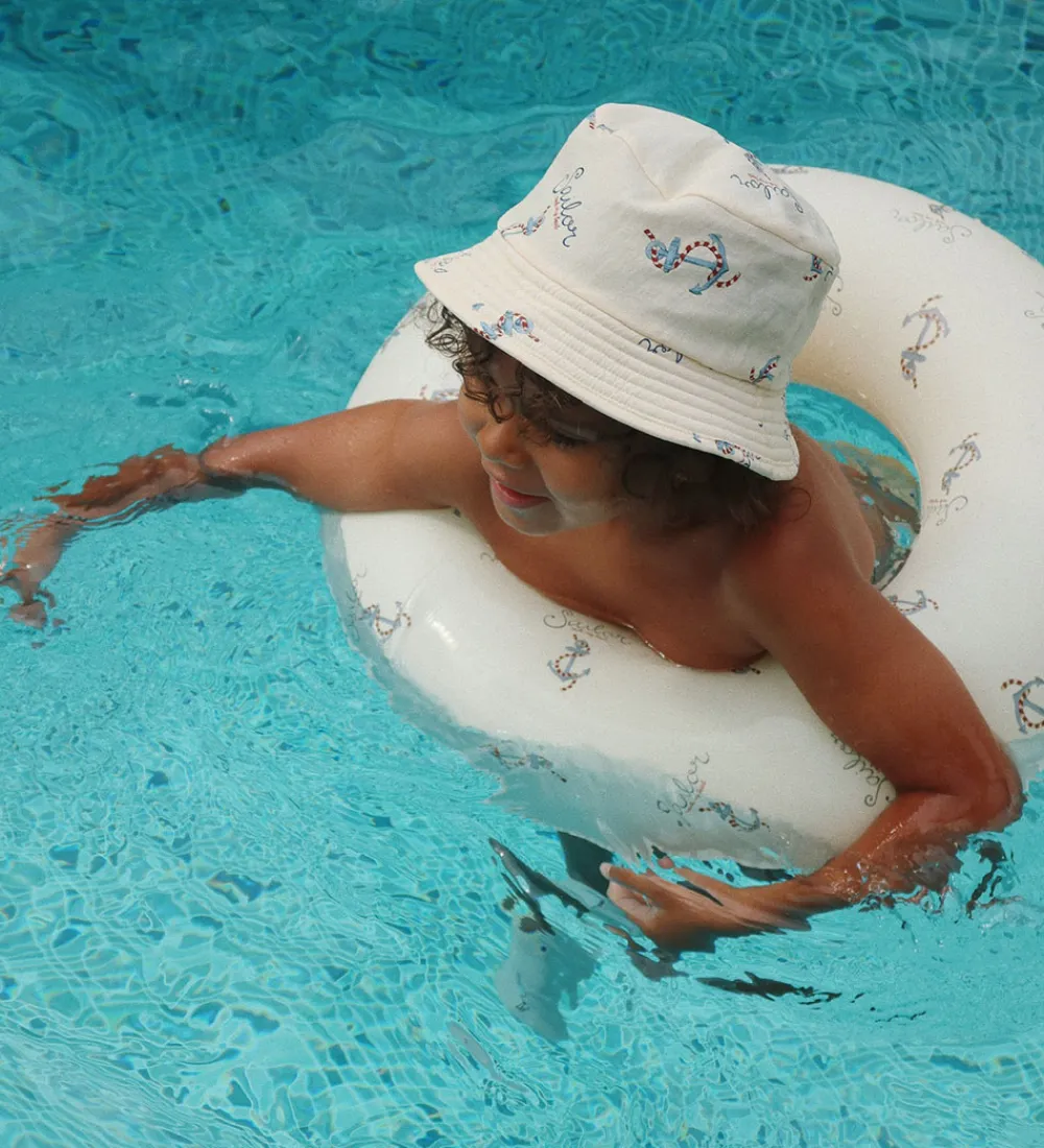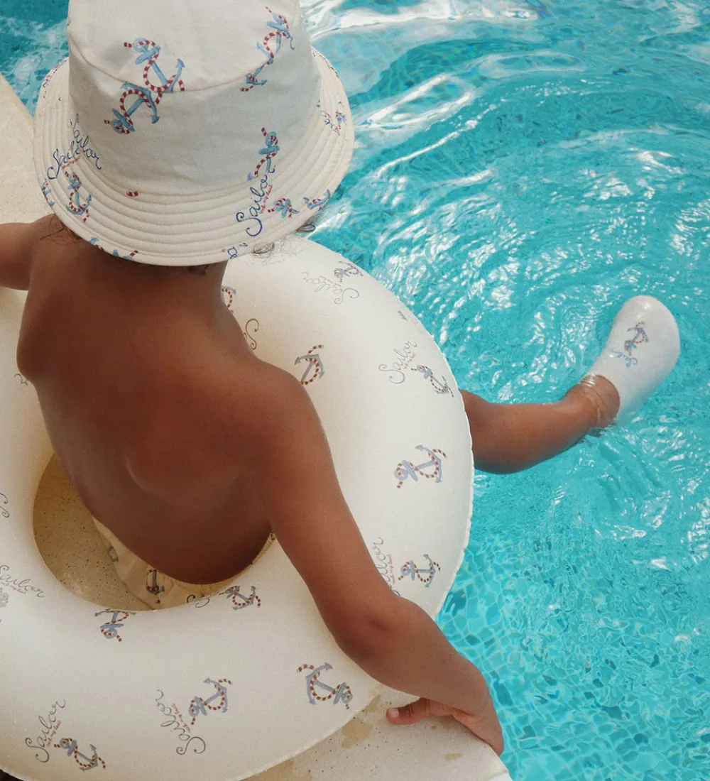 Fin Konges Sløjd badering i råhvid med smalle blå striber og et fint “Sailor” print.