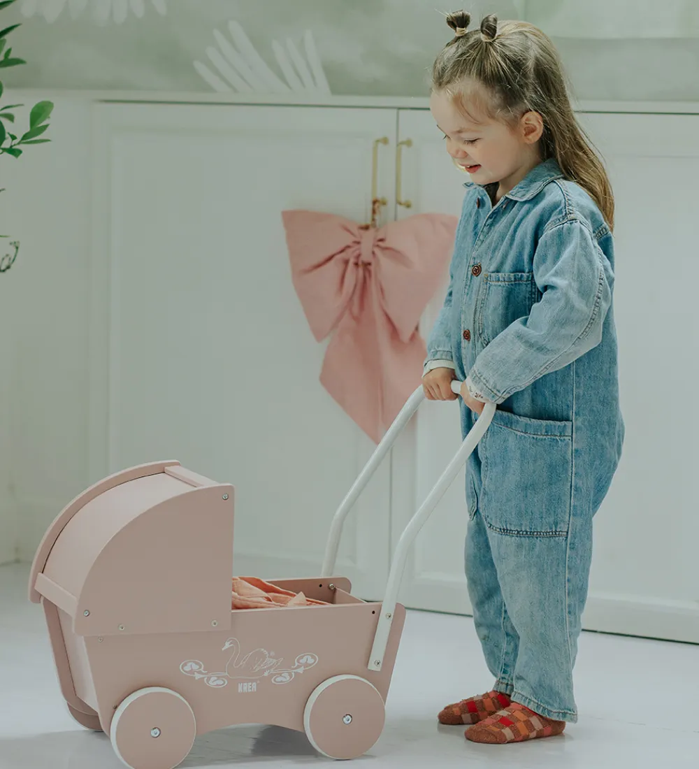 Dukkevognen udvikler barnets motoriske færdigheder, fantasi og rolleleg.