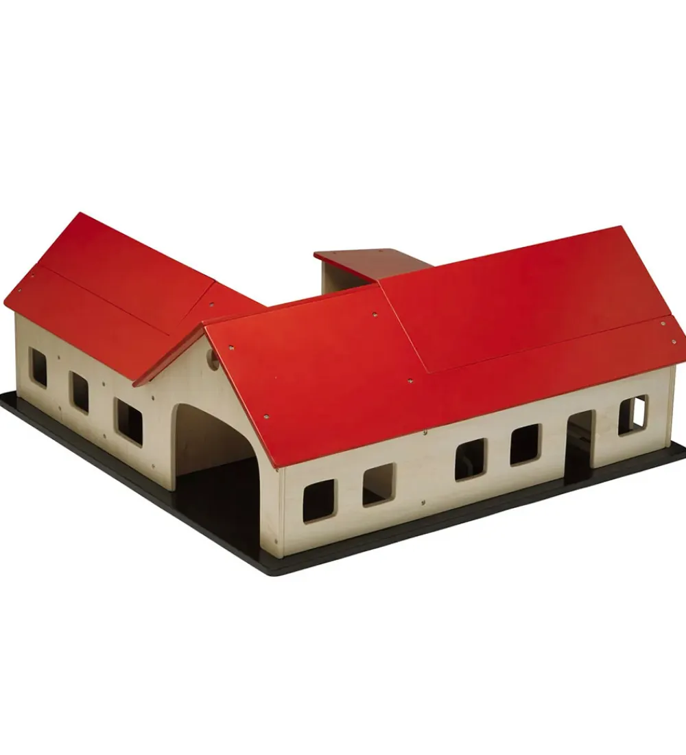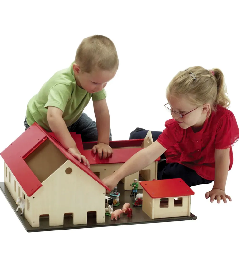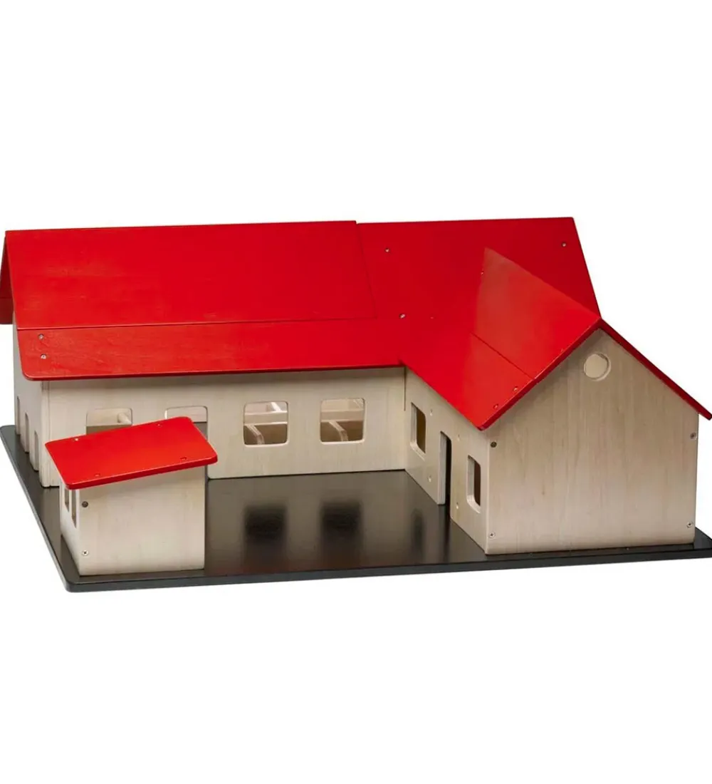 Krea bondegåden består af et hovedhus og en stor stald samt et lille skur. Man kan fjerne dele af taget over hovedhuset og stalden, så deter let at komme til at lege med bondegårdsdyr og dukker indei bygningerne.
