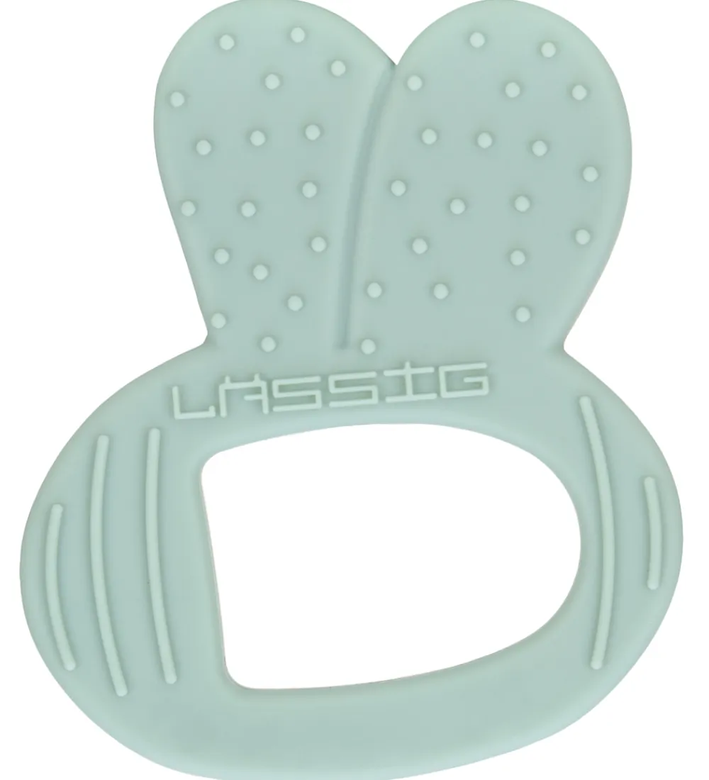 Lässig bideringen er lavet af blødt silikone med mønstrede strukturer, som er gode for gummer og tænder, samtidig med at den er sjov at lege med. Bideringen rengøres med kogende vand eller i opvaskemaskinen.