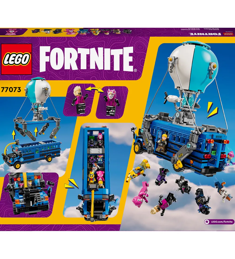 Sejt LEGO® Fortnite sæt med i alt 954 klodser, som kan samles til Battle Bus fra det populære onlinespil.