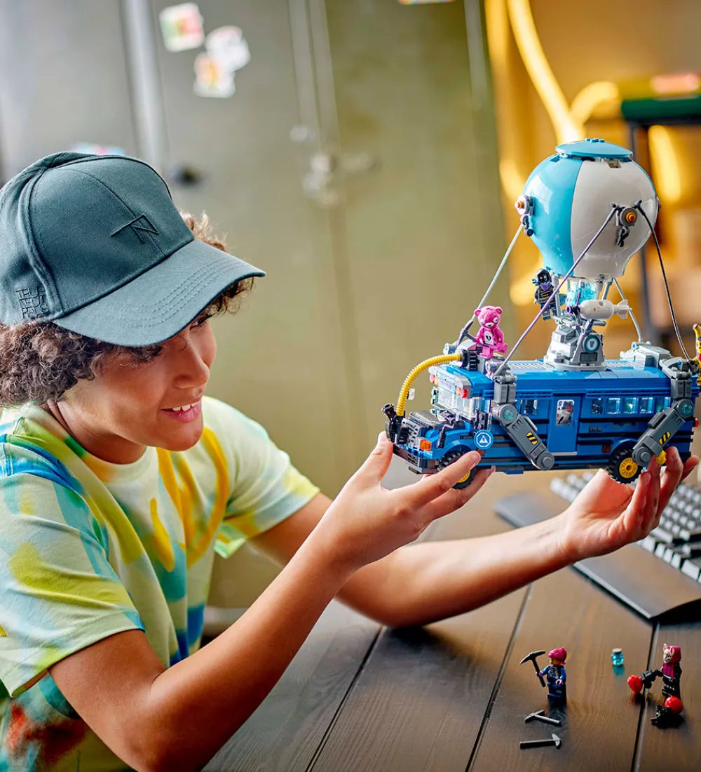 LEGO® Fortnite sættet er nemt at bygge ved hjælp af den medfølgende byggevejledning, men kan også findes i LEGO® Builder appen, hvor der kan zoomes og drejes i byggevejledningen.