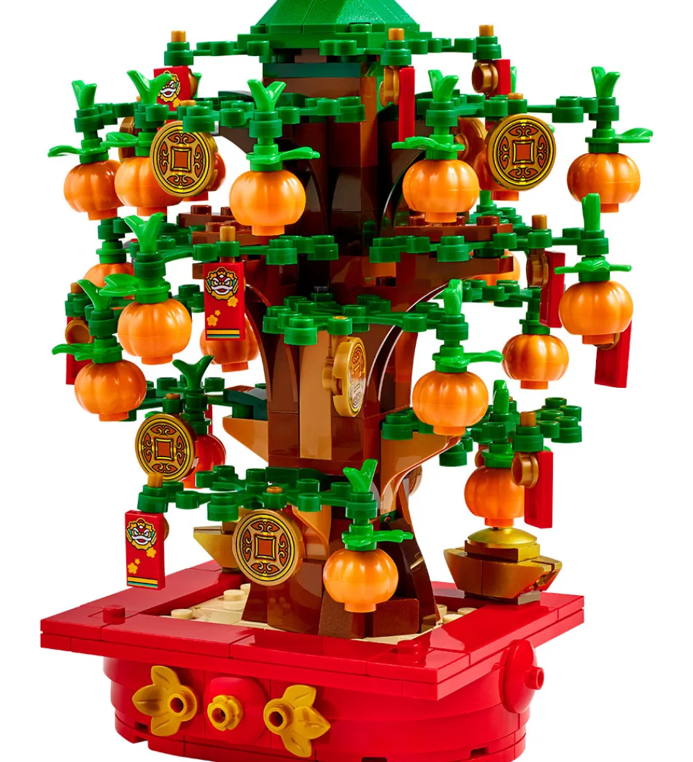 Smukt LEGO® Pengetræ sæt med i alt 336 klodser, som kan bruges til at bygge et detaljeret pengetræ med guldmønter og dekorative elementer. Sættet giver en sjov byggeoplevelse med fokus på detaljer og kreativitet.