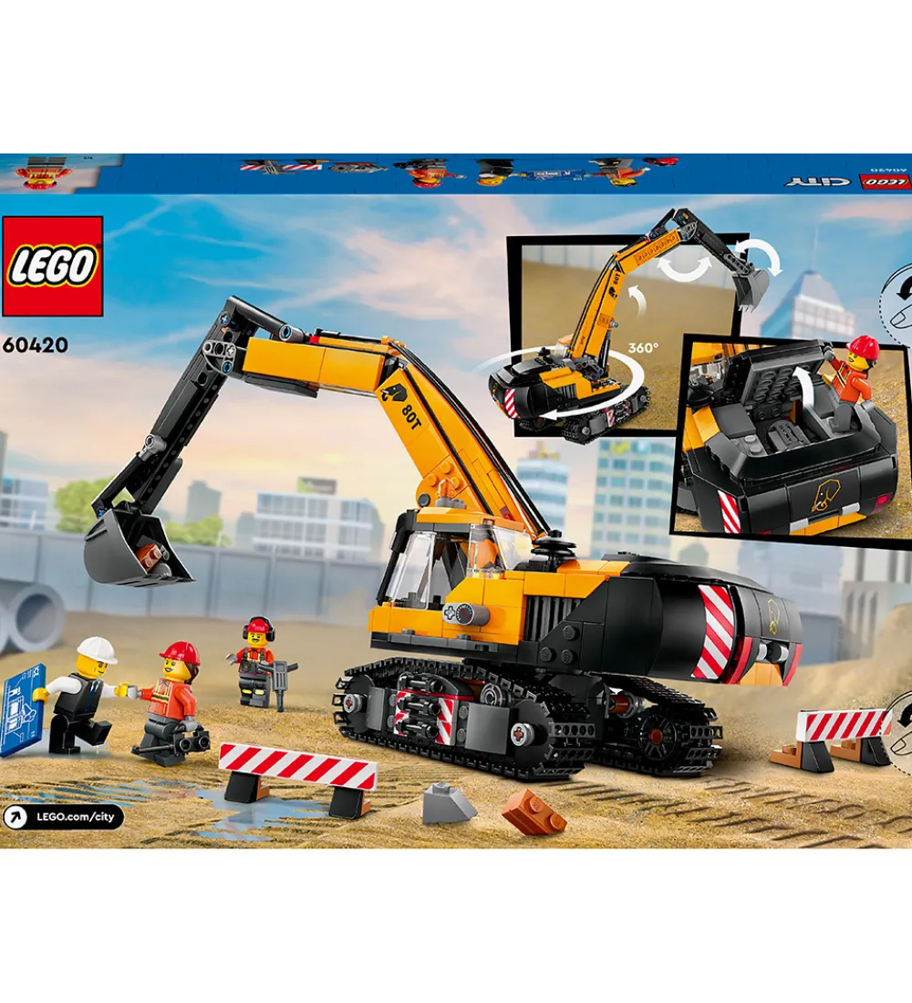 LEGO® City sættet er det perfekte legetøj til det kreative barn, der vil bygge og lege med sættet, som indeholder en gravko med et godt vejgreb, en alsidig kranarm og et førerhus, der kan drejes 360 grader samt 2 afspærringsbarrierer og 3 minifigurer af bygningsarbejdere og masser af tilbehør.
