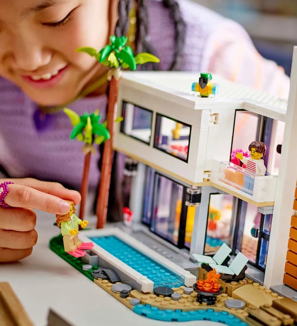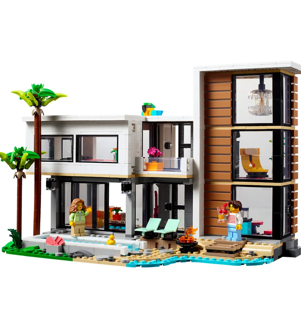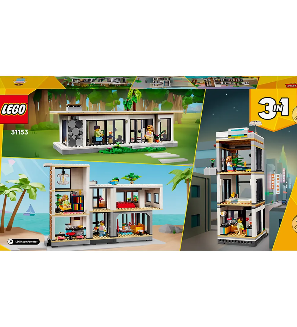 Spændende LEGO® Creator sæt med i alt 939 klodser, som kan samles til hele tre forskellige ting: et moderne hus på stranden, et stilfuldt 3-etagers byhus med tagterrasse og en skovhytte.