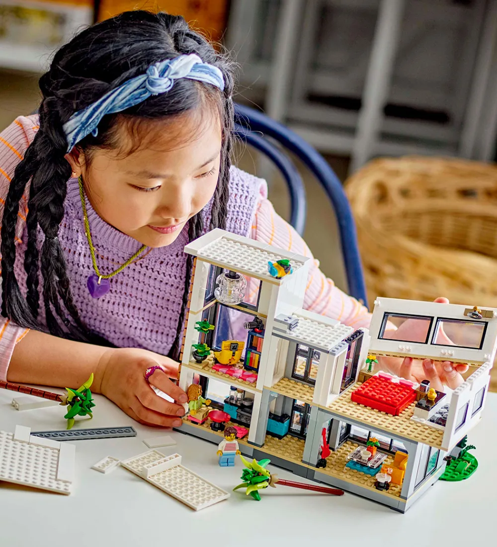 LEGO® Creator sættet er det perfekte legetøj til det kreative barn, der vil bygge, ombygge og lege med husmodellerne. Det moderne hus og byhuset i 3 etager har adgang til rummene fra bagsiden, mens skovhytten har et tag, der kan åbnes. Sættet indeholder også 2 minifigurer.