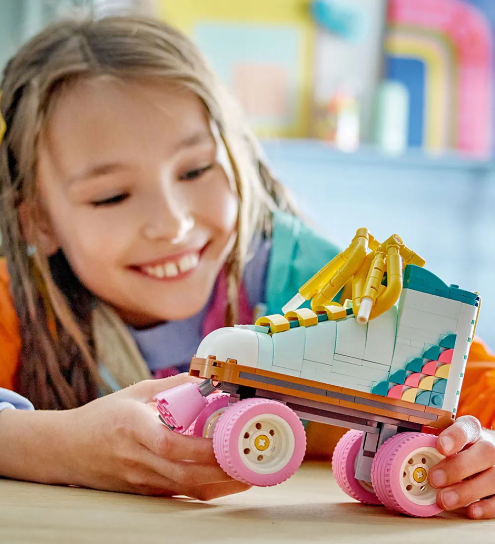 Spændende LEGO® Creator sæt med i alt 342 klodser, som kan samles til hele tre skønne retro-modeller: en legetøjsrulleskøjte med fire lyserøde, bevægelige hjul, et mini-skateboard med fire bevægelige hjul eller en boombox.