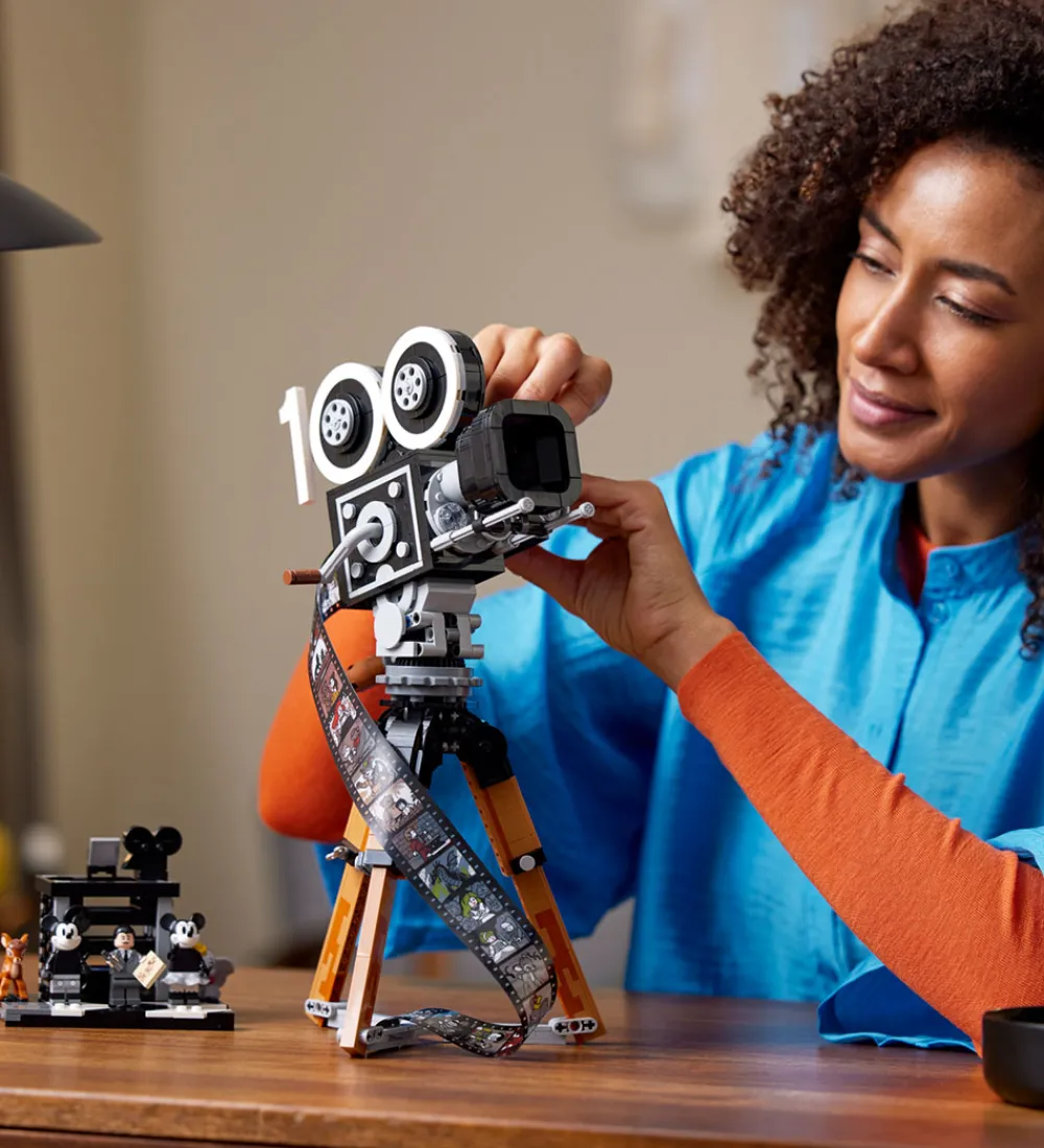 LEGO® Disney kameraet er en hyldset til Walt Disneys mange ikoniske og klassiske film. Der medfølger en filmstrimmel med stillbilleder fra 20 historiske Disney-film samt et klaptræ. Filmkameraet har et drejeligt håndsving og andre bevægelige dele. Walt Disney-kameraet er en flot samlersæt, som voksne vil elske at have stående udstillet i deres hjem.
