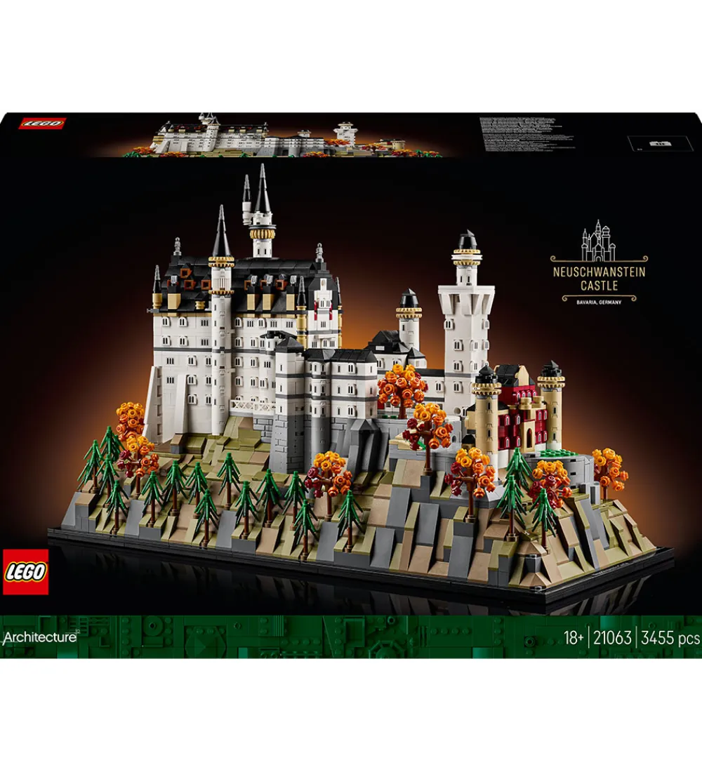 Imponerende LEGO® Architecture sæt med i alt 3.455 klodser, som kan samles til en detaljeret model af det berømte Neuschwanstein Slot i Bayern, Tyskland. Modellen gengiver slotsets karakteristiske tårne, mure og omgivelser med høj præcision.