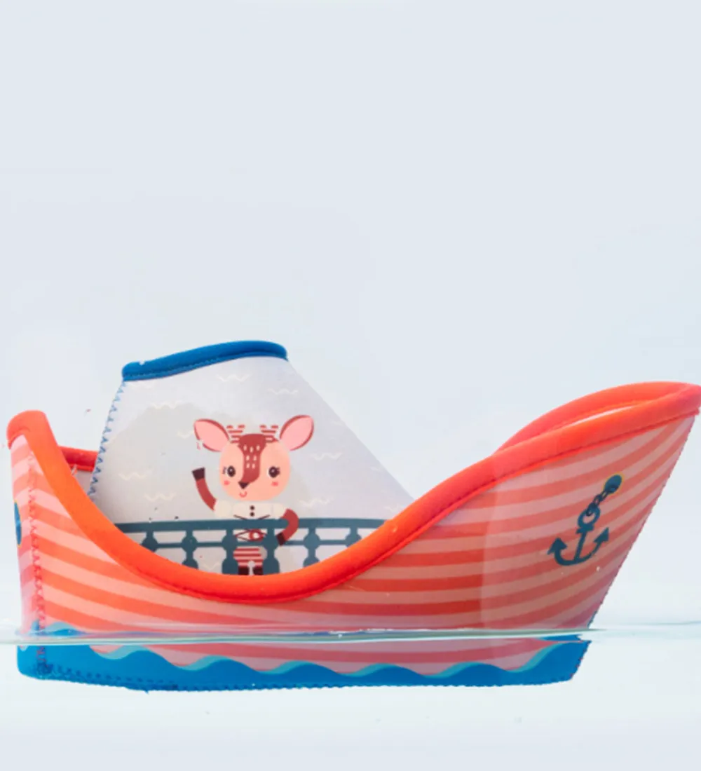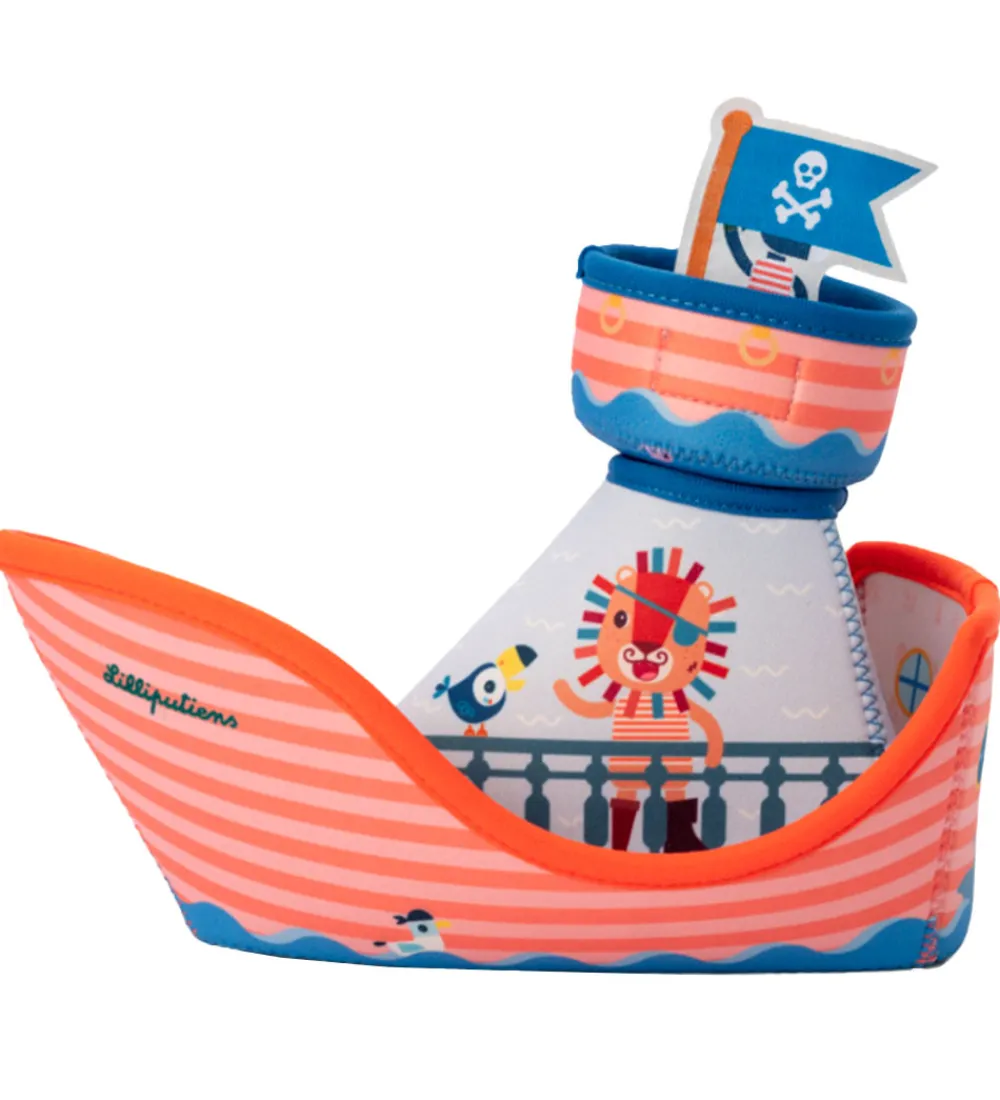 Sjovt Lilliputiens badelegetøj i form af løven Jacks piratskib.