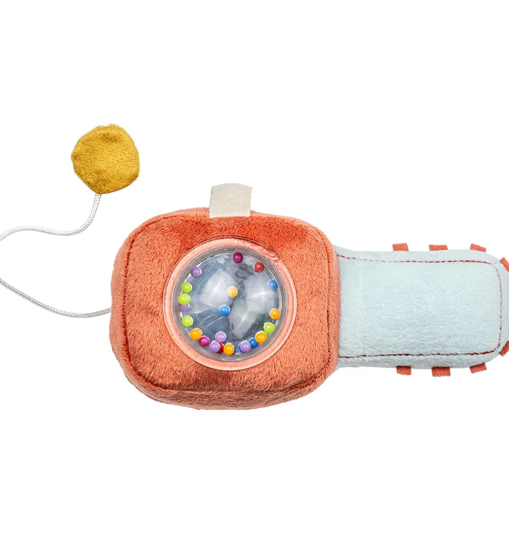 Charmerende Lilliputiens rangle af blødt plys med form som en motorsav. Lilliputiens ranglen har massere at udforske for de små, så som et spejl og en kuglerangle og derudover har den en vibrerende effekt ved blot at trække i snoren.