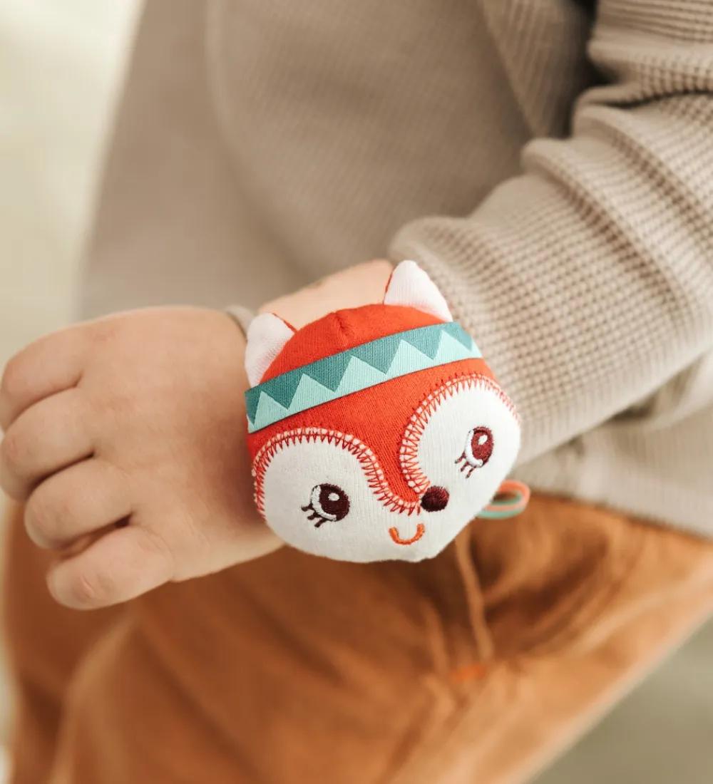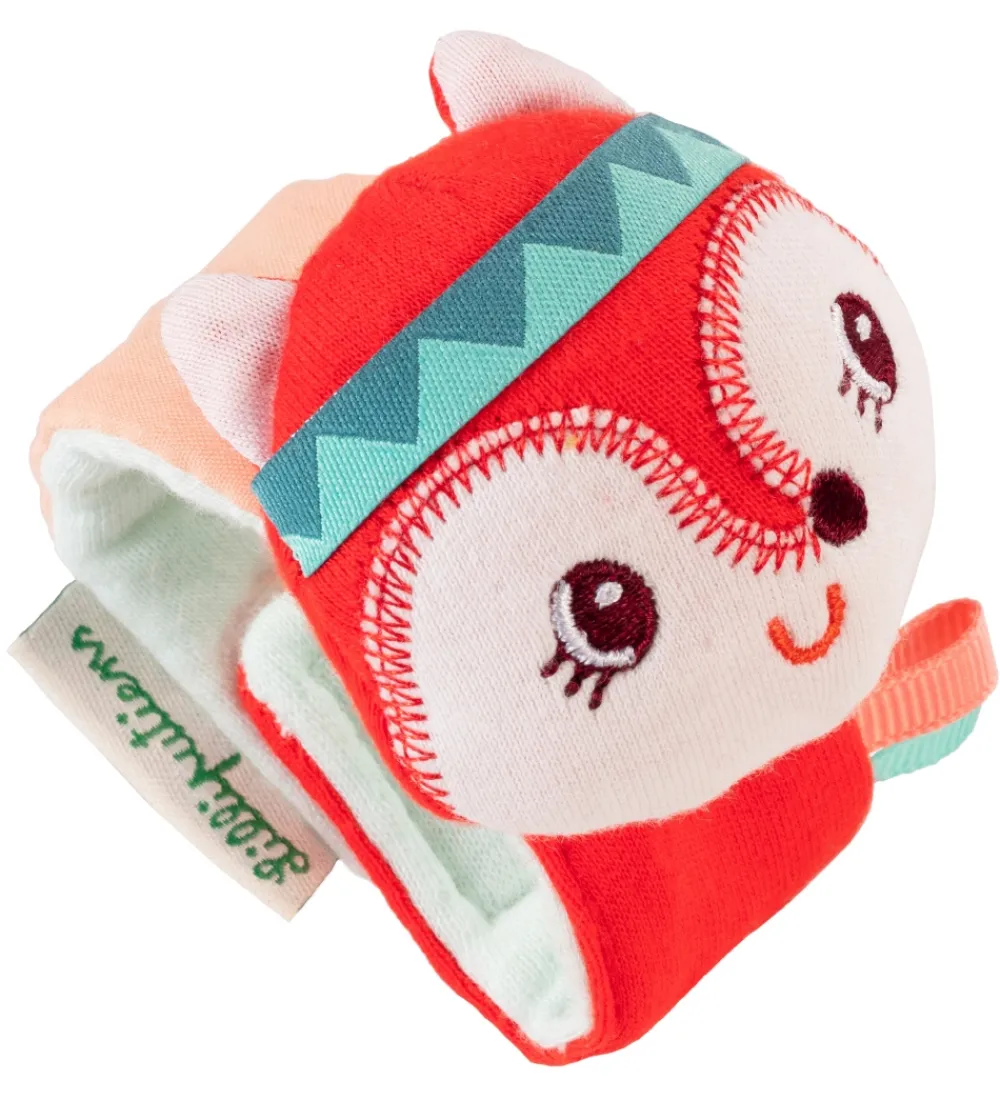Lilliputiens ranglen laver en raslende lyd, når barnet bevæger den. Armbåndet har velcrolukning og i øvrigt knitrepapir indvendigt, så det også giver lyd fra sig.