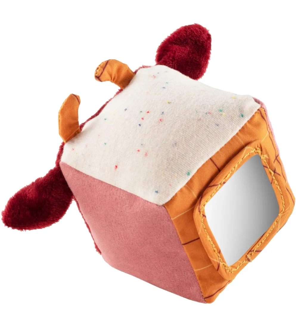 - Terningeformet med ko-ansigt, spejl og bjælde – meleret hvid, bordeaux og gammelrosa