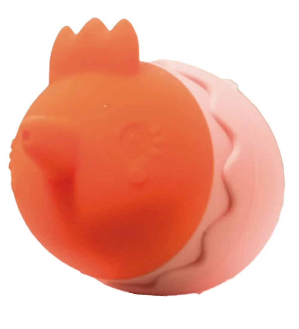 Fint Lilliputiens badedyr med form som et lille orange dyr.