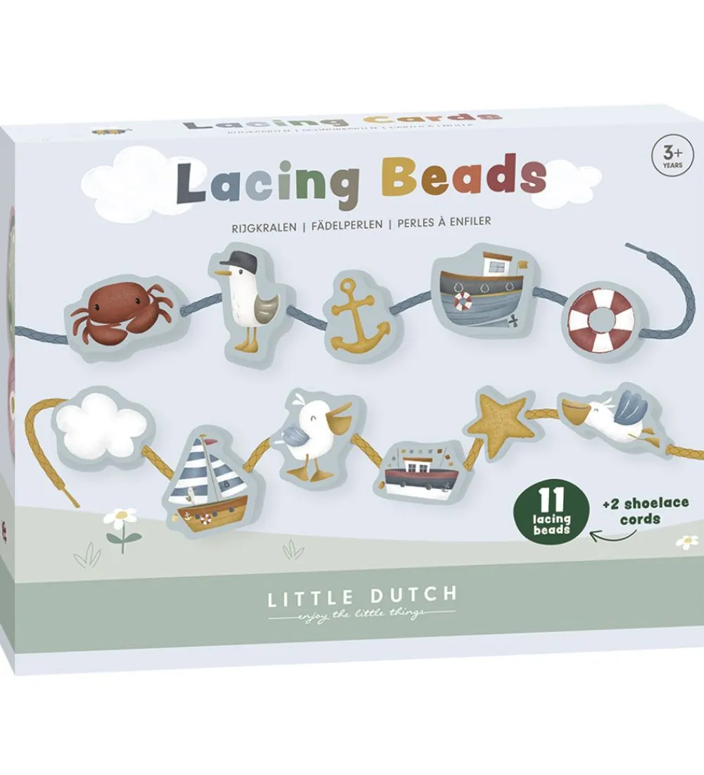 Little Dutch aktivitetslegetøjet består af 2 snore og 11 små figurer. I alle figurene er der et hul i hver ende, så snorene kan trækkes igennem alle figurene. Barnet træner herved sin finmotorik og koncentrationsevne. Med aktivitetslegetøjet er der lagt op til mange timer med leg, hvor barnet kan udfolde sig kreativt.