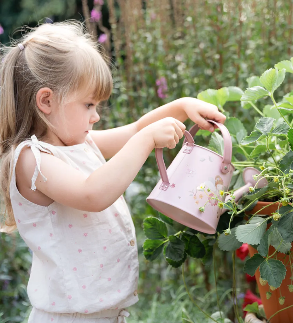 Skøn vandkande fra Little Dutch i en lys rosa farve med charmerende print af en bambi, små blomster og en fe. Vandkanden har to håndtag og er ideel til leg og udforskning i haven.