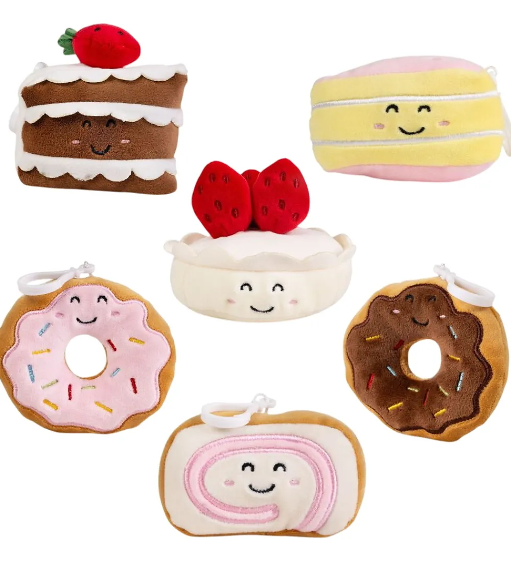 Sød Living Nature taskevedhæng med en dessert med smilende ansigt og plysset-struktur. Perfekt til at bringe glæde og charme til børneværelset.