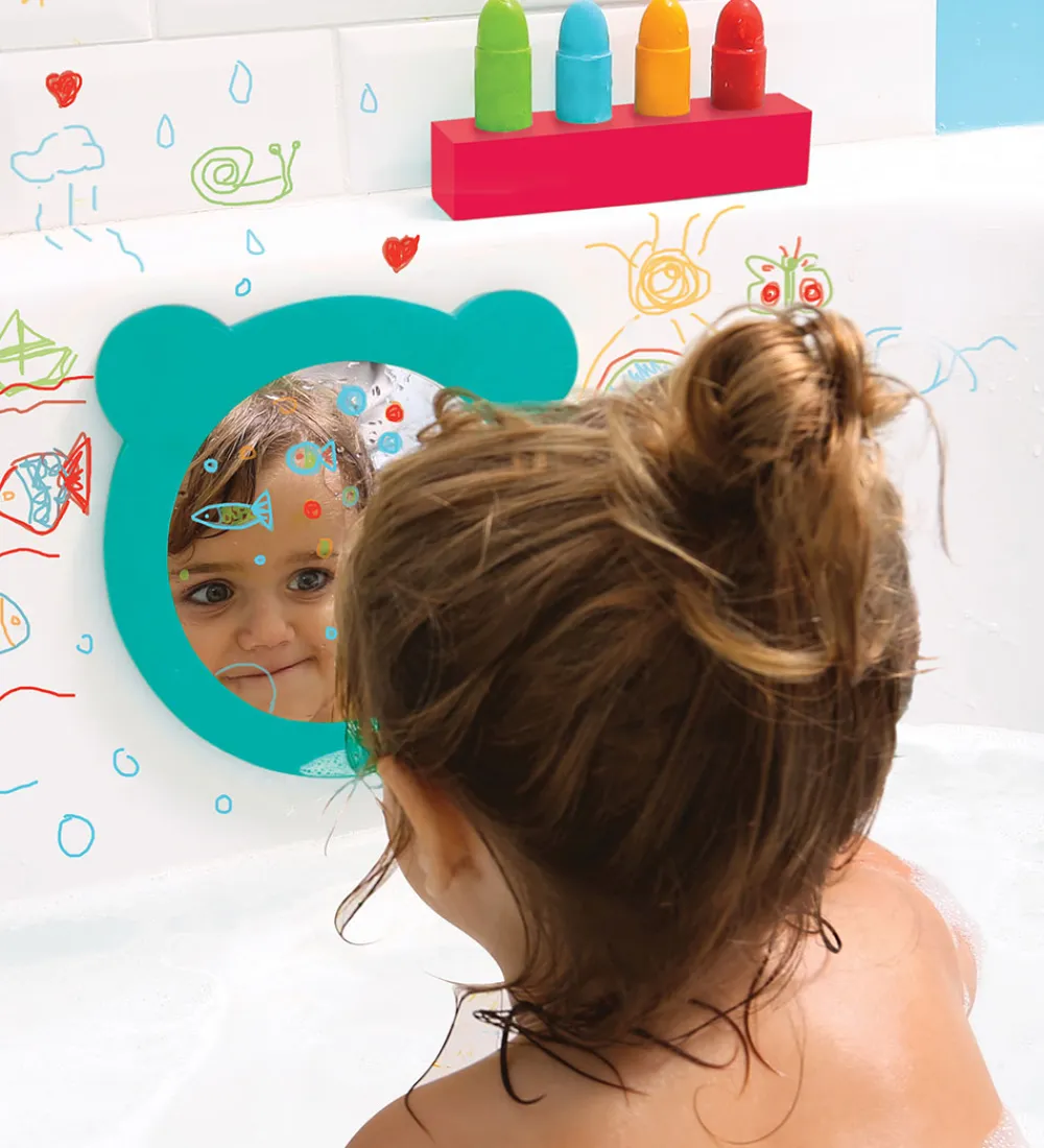 Ludi badelegetøjet består af et spejl som kan hænges fast på væggen, hvor de små kan bruge vandfarverne til at tegne på spejlet. Vandfarverne kan også bruges til at tegne på badekarret og fliser, og de er i en solid, vandafvisende kvalitet, som stadig kan vaskes af når legen er ovre.