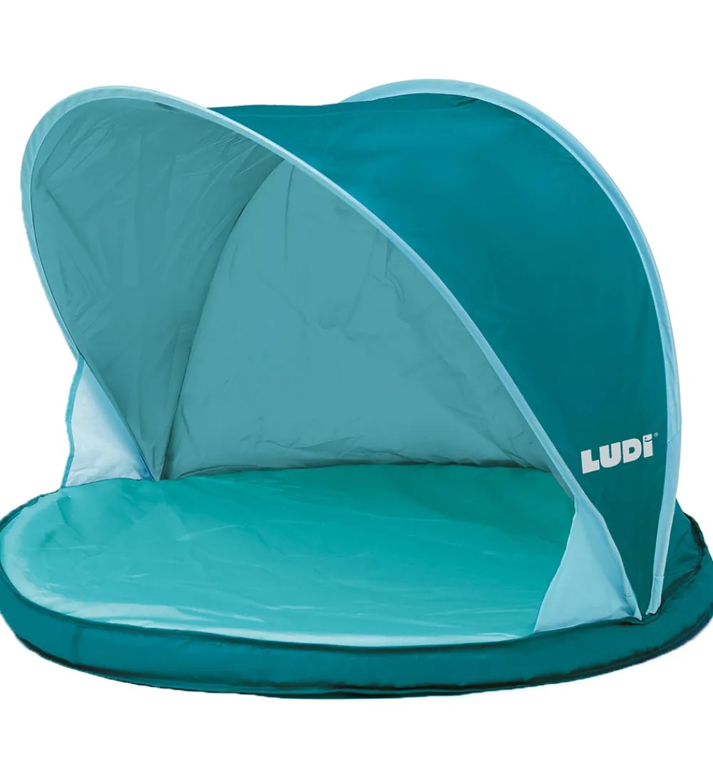 Ludi syggeteltet er perfekt til stranden eller haven, når baby har brug for et skygge sted. Teltet har en smart detalje i bunden, hvor man kan hælde vand i, så baby kan plaske rundt og køle ned i varmen.
