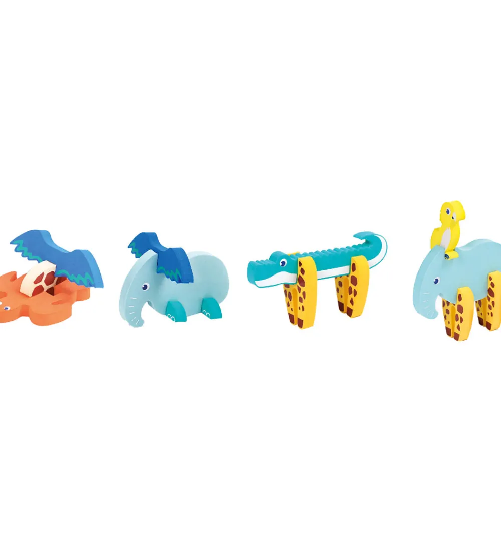 Ludi puslespillet er en 3D-udgave, hvor dyrene skal. De kan gøres “rigtigt”, så dyrene bliver sat sammen, som børnene kender dem, eller der kan laves nye, spændende kombidyr. Skumpuslespillet er simelt og sjovt for de mindste.