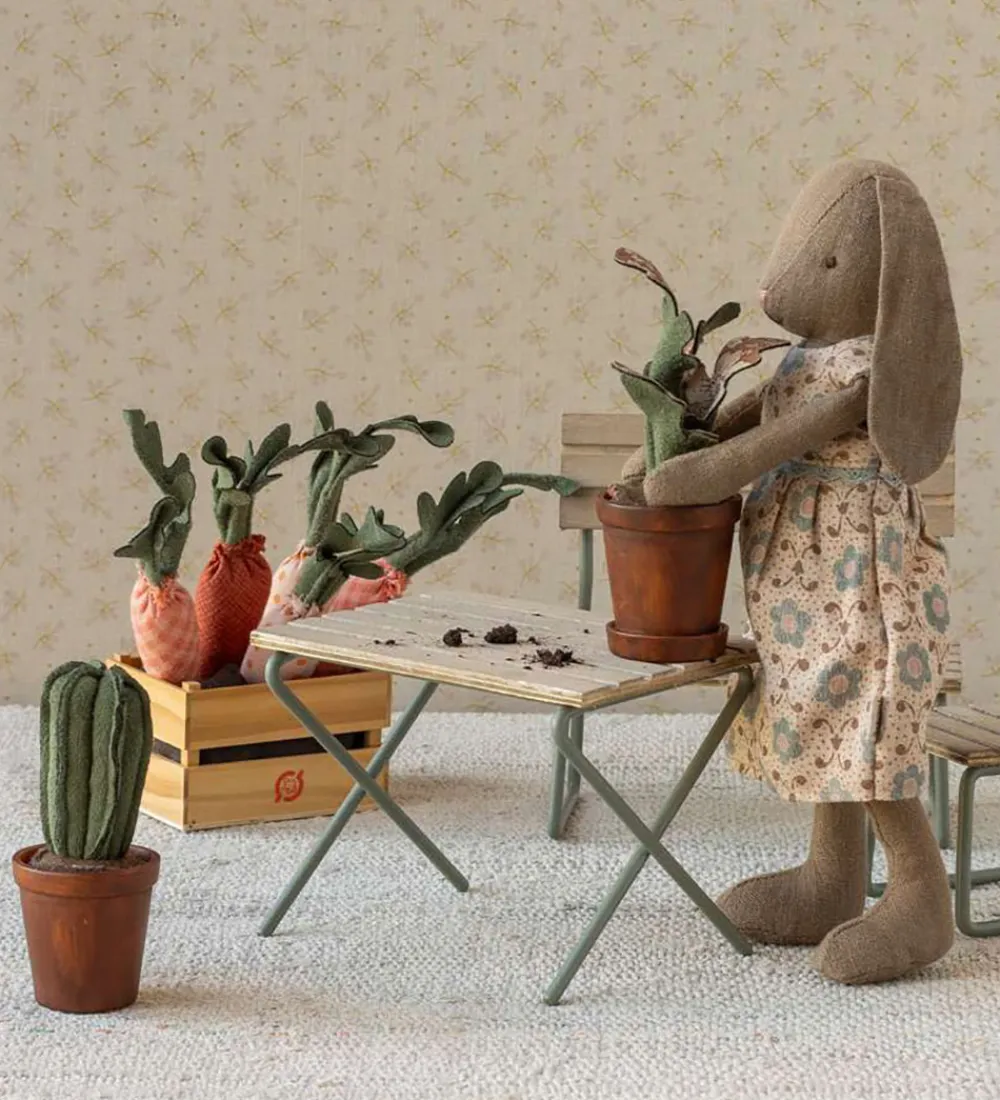 Charmerende Maileg krukke med en kaktus i brun og grøn. Maileg kaktussen tilføjer et unikt dekorativt element til ethvert dukkehus med sin livagtige stil og solide konstruktion.