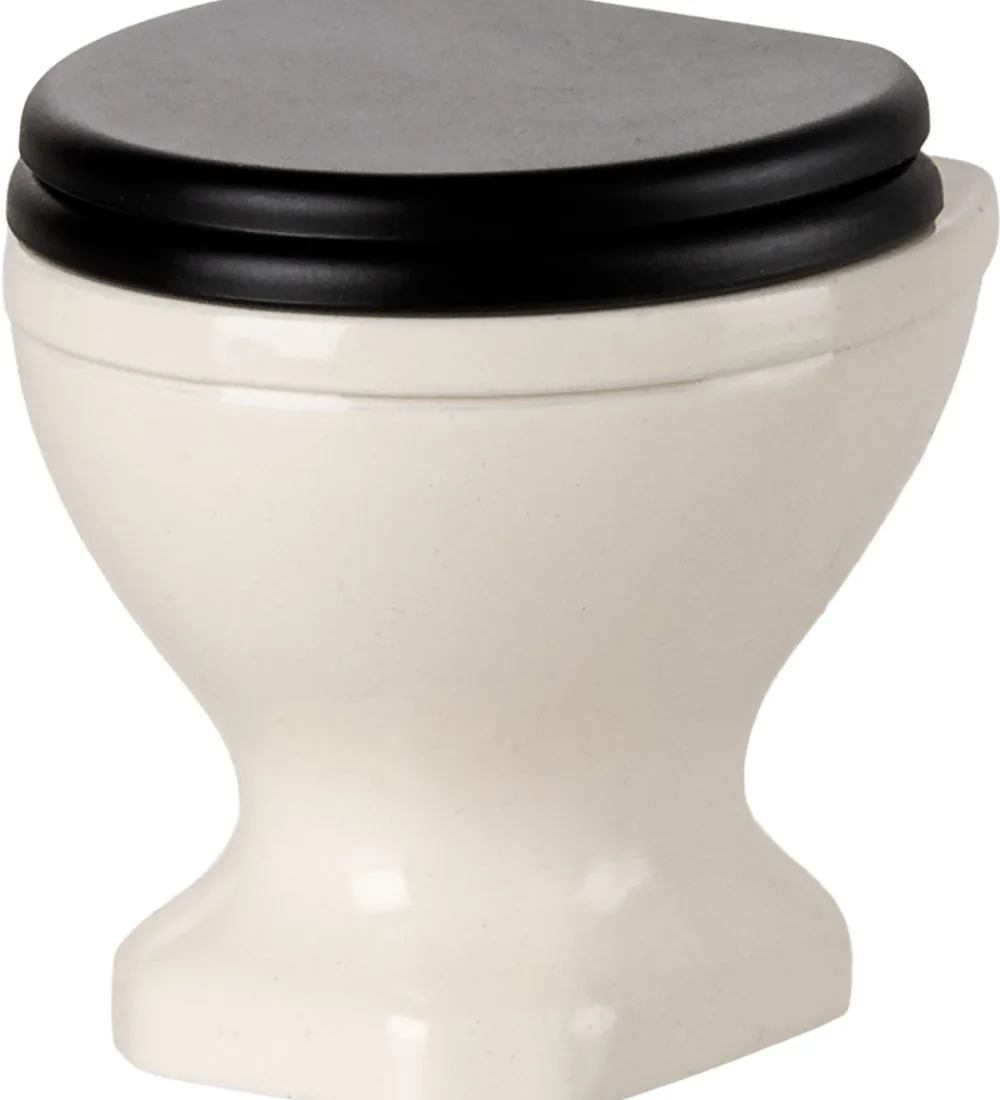 Elegant Maileg toilet i en klassisk råhvid med sort låg. Maileg toilettet er perfekt til at fuldende badeværelset og giver et realistisk touch til legen.