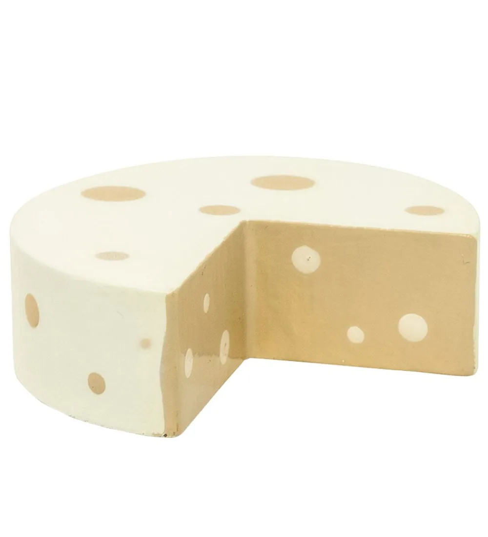 Underholdende MaMaMeMo legemad bestående af et ostehjul med et stykke taget ud.