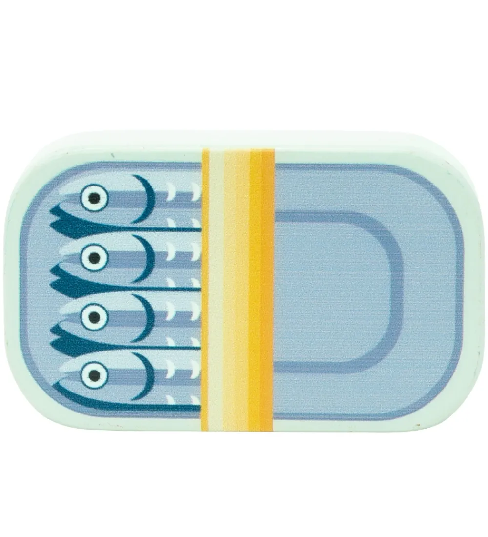 Underholdende MaMaMeMo legemad, bestående af en dåse med sardiner.