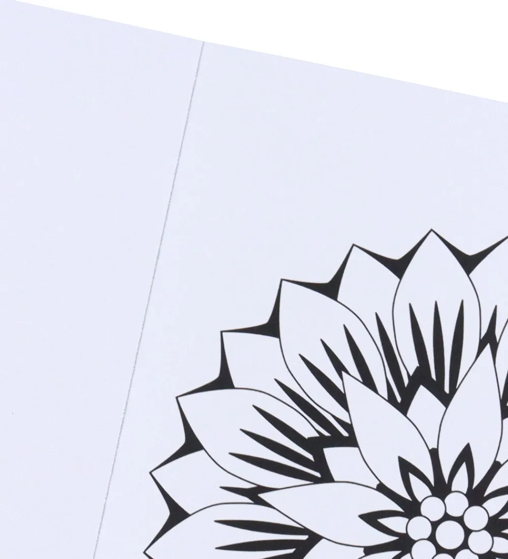 Mandala malerbogen indeholder 32 sider og er trykt på kraftigt bæredygtigt kvalitetspapir. Malebogen er indbundet, så hver enkelt kort kan tages ud og hænges op på væggen eller bruges som kort.