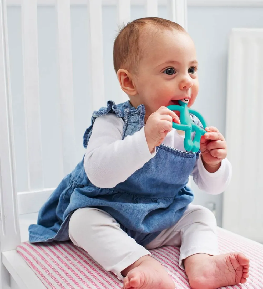 Matchstick Monkey bideringen er i en god kvalitet og hjælper baby med at få stimuleret gummerne når de klør. På bagsiden af hovedet er der små dutter, som kan bruges til at træne de små i at børste tænder. Den ergonomiske form gør det let for selv de helt små at holde fast i den.