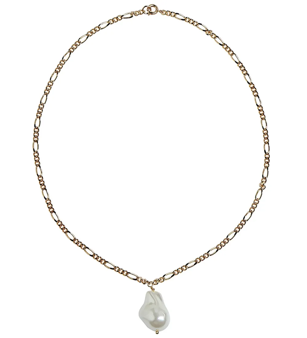 - Materialer:Figarokæde og kæde med ovale led, øskner, låse, stifter, perlestave, tråd og knudeskjulere