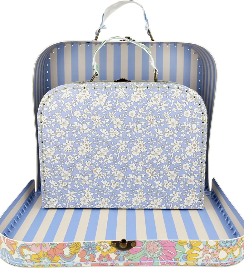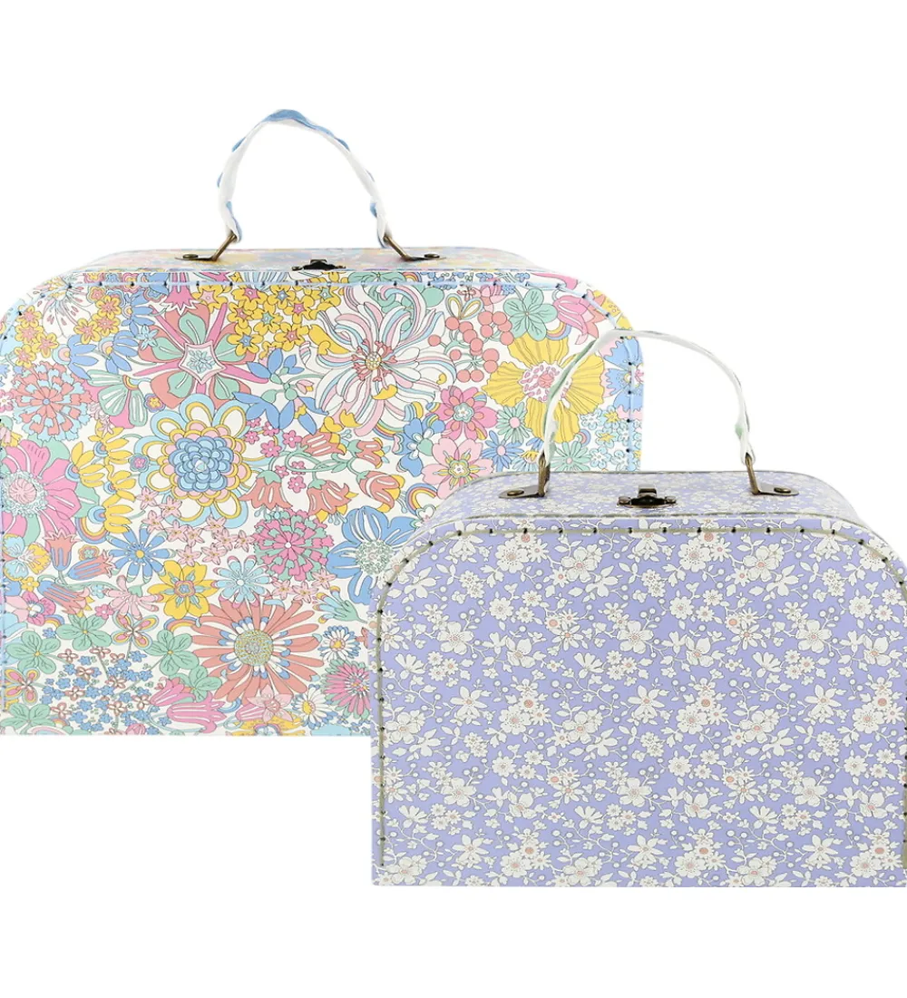 Smukke Meri Meri kufferter med farverige blomsterprints. Meri Meri kufferterne har praktiske håndtag, der gør dem nemme at transportere, og de to forskellige størrelser giver fleksibel opbevaring til forskellige behov.